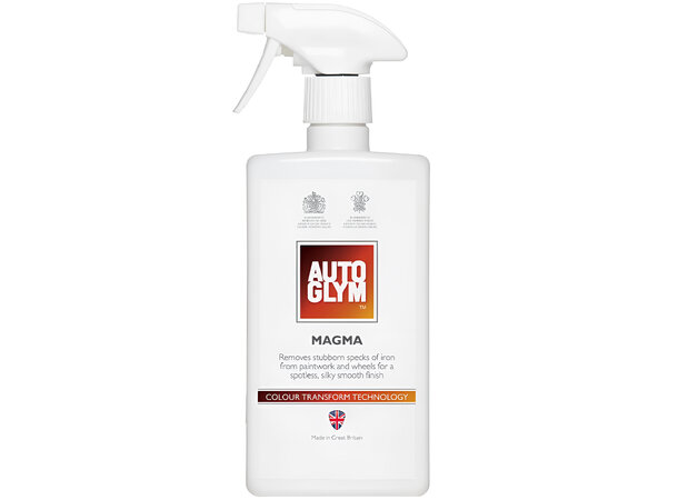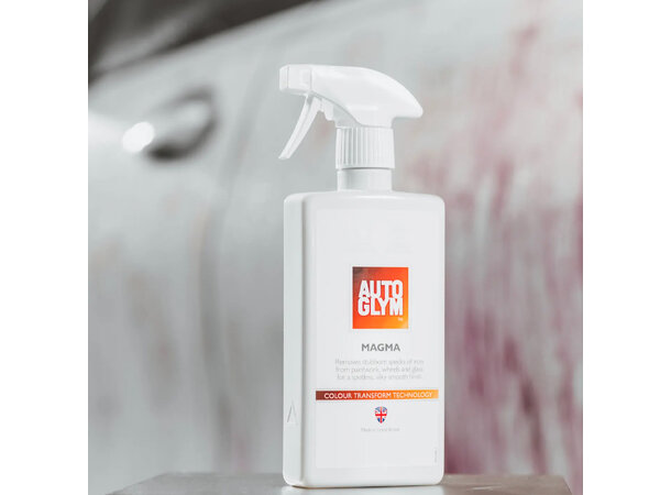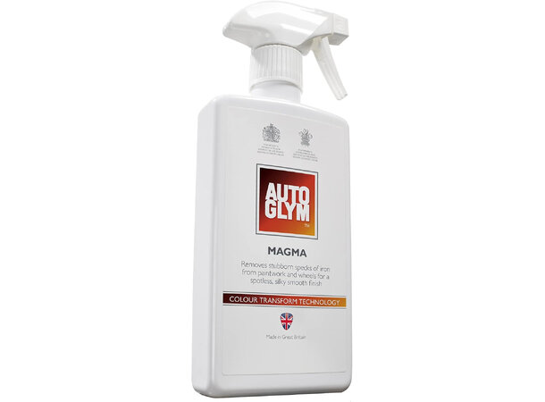 Kjøretøyet ditt er under konstant angrep fra luftbårne forurensninger. Mange av disse er bittesmå jernpartikler som fremstår som flekker på lakkering og bremsestøv på felger. dette demper glansen og føles ofte som "nupper i lakken". De aktive ingrediensene i AutoGlym Magma blir røde når de reagerer med disse jernpartiklene for å løsne dem trygt fra overflaten for å lett skylles bort.
