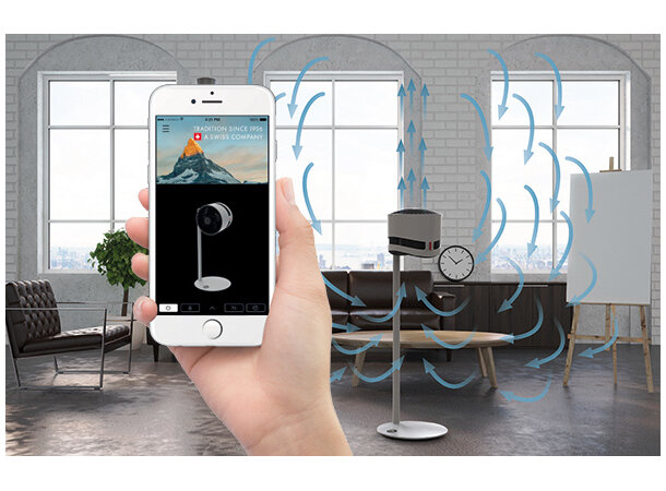 Med et elegant sveitsisk design og 270° justerbar luftstrøm, kan du enkelt tilpasse viften til ulike bruksområder.