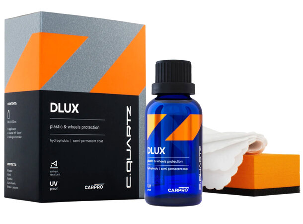 CarPro C.Qaurtz Dlux er en plast, gummi og metall coating. C.Quartz Dlux vil kunne friske opp plasten og beskytte metallkomponenter og er derfor en universal og svært imponerende coating.