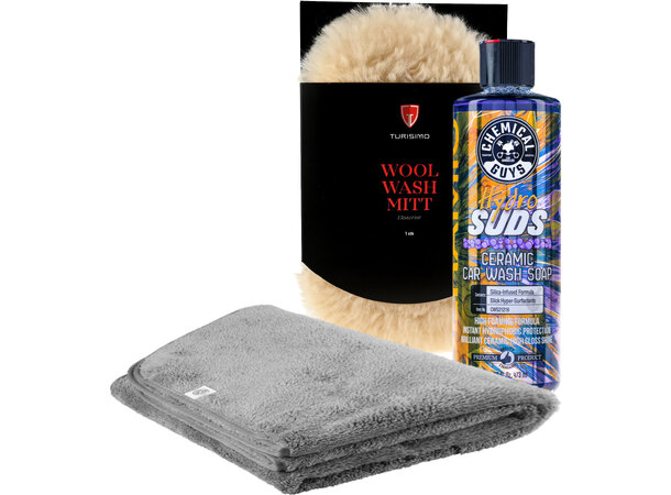 Er du langt over snittet opptatt av blank lakk, bør du være like opptatt av en så skånsom vask som mulig. I denne pakken har vi satt sammen en super såpe for dette formålet, sammen med vår mest skånsomme vaskehanske og det mest skånsomme tørkehåndkleet på markedet.