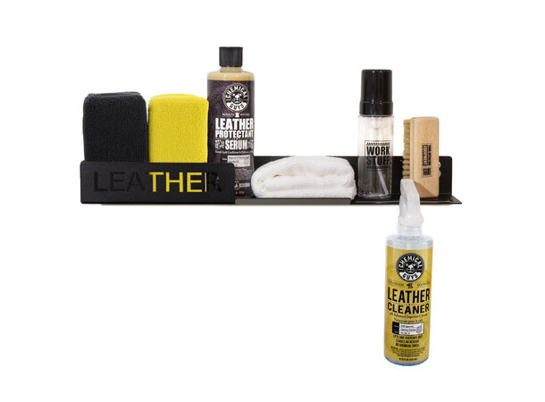 Med i Chemical Guys Leather Care Kit er alt du trenger for å utføre jobben. Inkludert skinnbørste, ufarget mikrofiberklut og påføringsapplikatorer.
