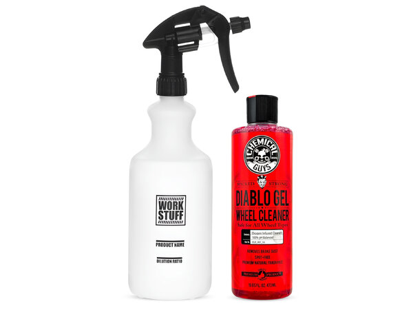 Først har vi Chemical Guys Diablo Wheel Gel. Dette er som trylledrikk for felgene dine. Hør her: Har du dyre, blanke felger? Eller kanskje noe mer standard? Uansett, dette mirakelmiddelet renser dem til en ny standard. Det er som om det tryller bort alt skitt og møkk. Og her er det beste: Den er mild som en godhjertet kattunge, så du trenger ikke bekymre deg for å skade felgene. Og det er ikke alt! Dette er din hemmelige hjelper for den raske ukentlige vaskejobben!