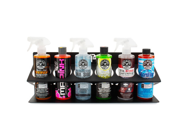 Hold alle dine bilpleieprodukter organisert og lett tilgjengelige med Poka Premium flaskeholder. Denne elegante vegghyllen, laget av galvanisert stål og pulverlakkert for ekstra holdbarhet, gir en ryddig og profesjonell look i garasjen din. Den har plass til opptil 6 flasker, perfekt for oppbevaring av alle produktene fra Chemical Guys-pakken. Les mer