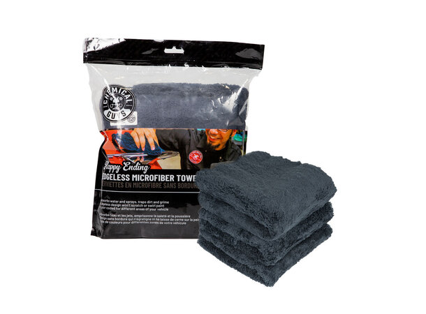 Chemical Guys Happy Ending er fantastisk gode mikrofiberkluter spesielt beregnet for "the final step". Happy Ending gir deg den perfekte avslutning på detailingen! Chemical Guys Happy Ending er en serie mikrofiberkluter laget av blandingen 70/30 polyester/polyamid. Disse klutene sikrer en ripefri og myk avtørking av vokser, forseglinger og quickdetailere.