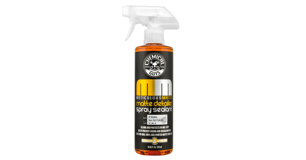 Chemical Guys Meticulous Matte Quick Detailer inneholder en mild rens og vedlikeholder matte overflater på en helt suveren måte. Den inneholder ingen glansforsterkere eller vokser, men har en god beskyttelse som vil lette senere vedlikehold. Chemical Guys Meticulous Matte Quick Detailer kan gjerne brukes som en tørkehjelp etter vask av bilen.