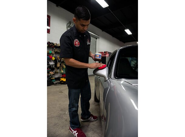 Med denne får du altså varmen og gløden til en carnauba voks, men også blankheten til en forsegling. Bilen må være skikkelig ren før påføring, vi anbefaler å gå over med en lakkrens for maskin eller hånd før påføring av voksen. Chemical Guys Glossworkz Glaze er et fint produkt å gå over lakken med før voksen.
