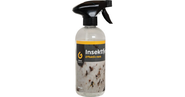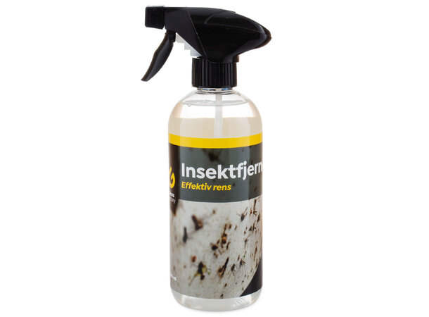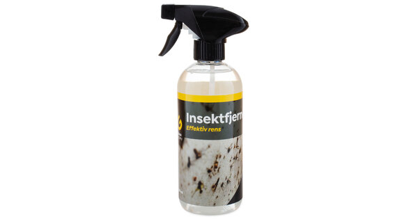 - La produktet virke i 3-5 minutter og spyl av. Ved behov spray på litt Insektsfjerner og tørk enkelt over med en mikrofiberklut eller vaskehanske på ekstra hardtsittende flekker.