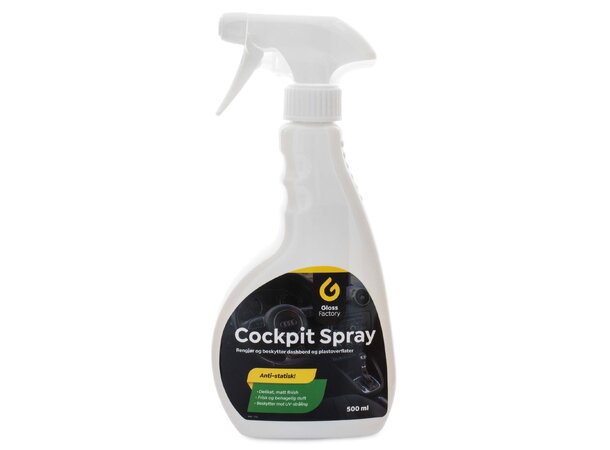 Cockpit Spray har også en antistatisk effekt som gjør at støv ikke så lett setter seg på overflaten som tidligere.