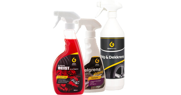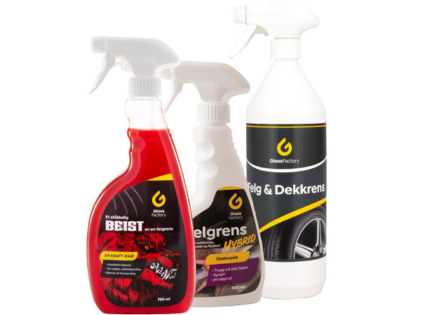 Gloss Factory har laget en felg og dekkrens som ikke bare er utrolig effektiv på felgene men også rengjør dekksidene i dybden. Denne felg og dekkrensen fjerner selv den vanskeligste gulningen på felgene samtidig som den er utrolig skånsom grunnet den ikke inneholder syre.