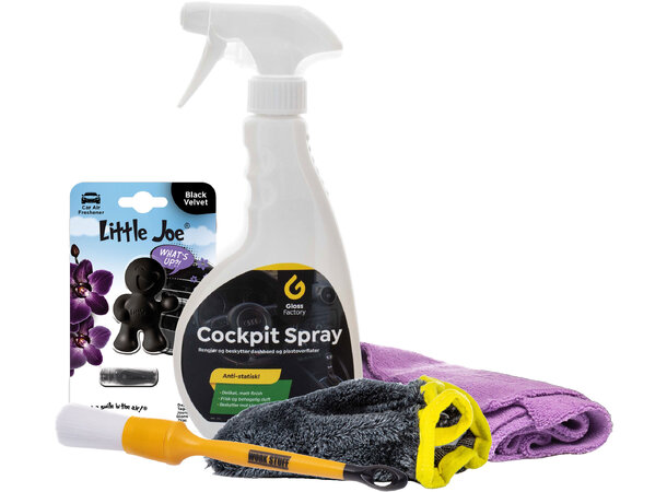 Gloss Factory Cockpit Kit tar deg raskt og effektivt gjennom en grundig rengjøring av dashboars, dørpanel, innstegslister, navigasjonsskjerm, instrumentpanel, ratt og alle andre harde overflater inne i bilen.