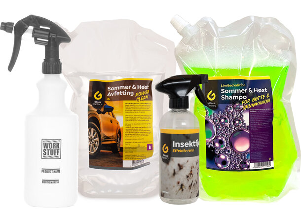Gjør sommervasken til en lek med Gloss Factory Effektiv Sommervaskepakke. Denne pakken inneholder tre kraftige produkter som vil hjelpe deg med å fjerne insekter, fugleskitt, sevje og veistøv, og etterlate bilen din ren og skinnende.