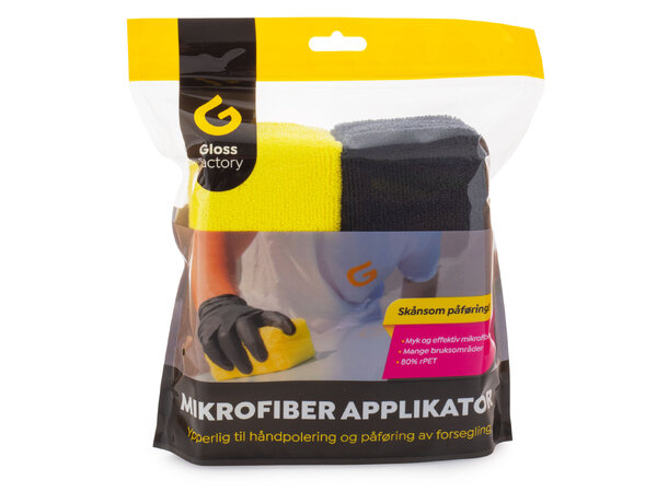 Mikrofiber er en blanding av polyester og polyamid, og forholdet mellom de to bestemmer mykheten i stoffet. Gloss Factory Mikrofiber Applikatorer er laget med 70/30 blandet mikrofiber for en ekstra myk følelse som drastisk reduserer risikoen for å ripe følsomme biloverflater. Gloss Factory Applikatorer er sikker, skånsom og svært allsidige applikatorer du kan bruke til svært mange formål innen pleie av bil, båt, MC osv.
