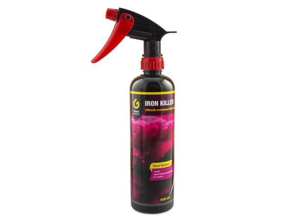 Gloss Factory Iron Killer lar deg fjerne disse i en enkel og skånsom operasjon. Iron Killer løser opp innkapslete jernpartikkler på lakken og løsner de fra overflaten som gjør at du kan spyle det bort med en høyttrykkspyler. Gloss Factory Iron Killer vil reagere med overflaten og skape en lilla reaksjon der den finner metallpartikler. Dette betyr at produktet jobber med å løsne flyverusten fra overflaten.