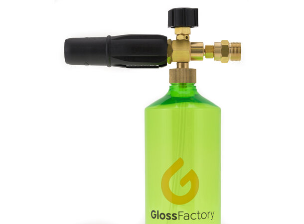 Kobling til skumkanon. Skumkanon medfølger ikke og er bare brukt som illustrasjon for tilkobling.