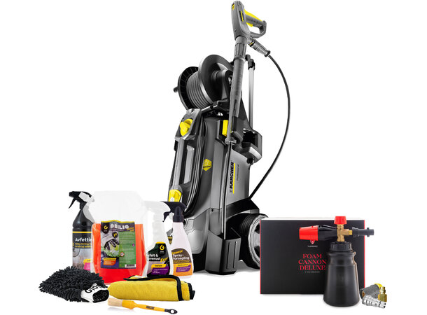 Denne høytrykkspyleren er vår soleklare favoritt og har vært det gjennom mange år. Her har vi bundlet en god startpakke for deg som elsker å vaske bil. Vi har lagt til den meget gode skumkanonen fra Gloss Factory, sammen med hurtigkoblingene som gjør at du skifter fra lanste til skumkanon på sekunder.