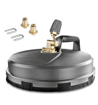 Leveres med trippeldyse for rask og enkel justering av vannstrålen. Velg mellom innstillingene blyantstråle, viftestråle (25°) og lavtrykks-viftestråle (40°). Sistnevnte brukes for påføring av rengjøringsmiddel via slangen som ligger i front på spyleren. Automatisk kjemidoseringsenhet for rengjøringsmiddel gir riktig blandingsforhold. Utstyrt med slangetrommel og 15m slange som gir stor arbeidsradius.