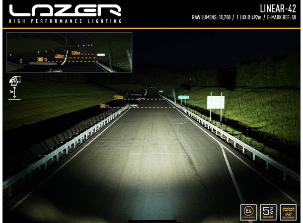 LedBar LAZER LINEAR 42 STANDARD er et førsteklasses ekstralys med et slankt design som enkelt kan integreres i en rekke kjøretøy, fra små til store, uten å forstyrre kjøretøyets originale utseende. Dette kraftige ekstralysen gir enestående lysytelse og funksjonalitet for ulike kjøreforhold. Her er en detaljert oversikt over produktet:
