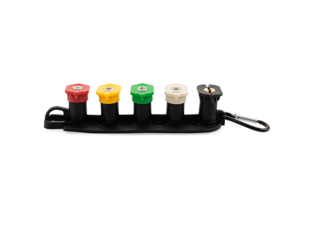 Settet består av fem dyser, hver farget for enkel identifisering, og tilpasset ulike rengjøringsbehov:
