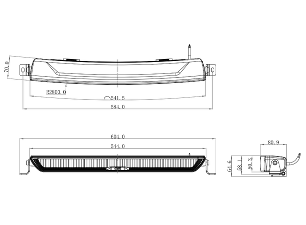 - Dimensjoner: 541,5/544×80,9×50,3 mm