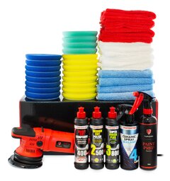 Med denne startpakken har du alt du trenger for å oppnå en profesjonell maskinpolering. Perfekt for å gjenopprette lakken og gi bilen din en varig høyglans!