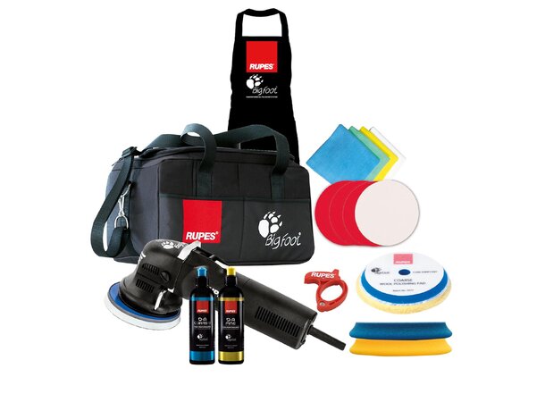 Rupes LUX kit med poleringsmaskinen Rupes Bigfoot LHR 12E Duetto. Dette er en maskin med revolusjonerende teknikk, ergonomisk design og 12 mm utkast. Ingen hologrammer, revolusjonerende teknikk og 12 mm utkast.
