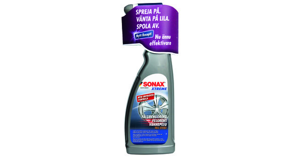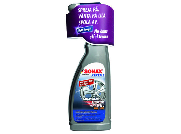 Sonax Xreme Felgrens er en svært effektiv syrefri spesialrens for alle typer stål og letttmetallsfelger. Fjerner enkelt selv den mest gjenstridige smuss, som forbrent bremsestøv, olje- og gummirester og annet veiskitt fra alle typer felger.