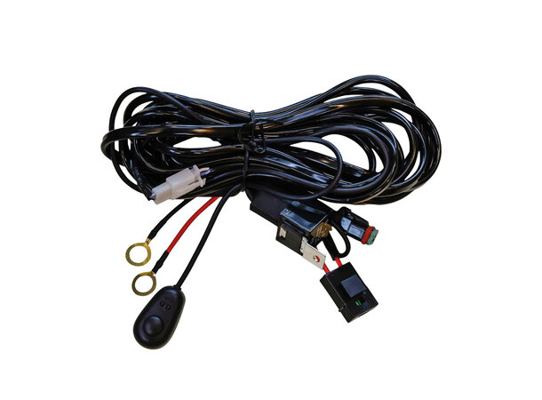 12-24V kabelsett som er tilpasset en LED-rampe med maks forbruk 145W med DT-kontakt, og maks 360W hvis DT-kontakten kuttes. Kabelsettet består av et 40A relé, 30A hengende sikring og kabler (1,5 mm²) med en DT2-kontakt og 3 meter lang.