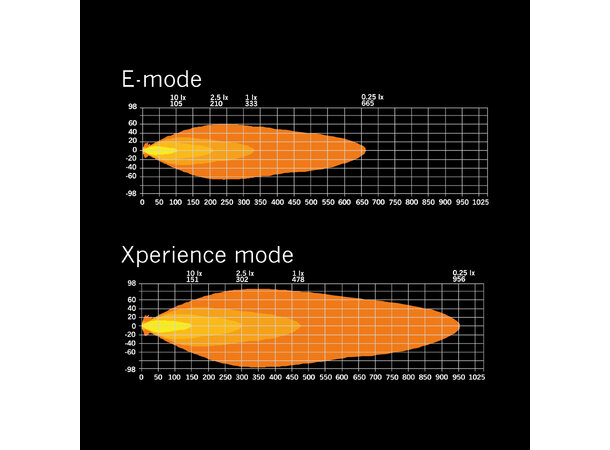 - Kraftig lysstyrke: 3600 lumen i E-mode og 10600 lumen i Xperience-mode.