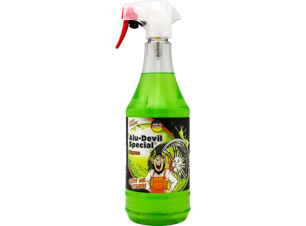 Den tyske produsenten Tuga Chemie har laget en moderne felgrens, Alu-Devil Special. Dette er en PH-balansert felgrens, noe som vil si at den er syrefri og dermed sikker på de fleste felger. Vi anbefaler den på de aller fleste finisher, men er du usikker, ta en liten test først. Felger som f.eks polert alu, uten klarlakk, skal man alltid være litt forsiktig med.