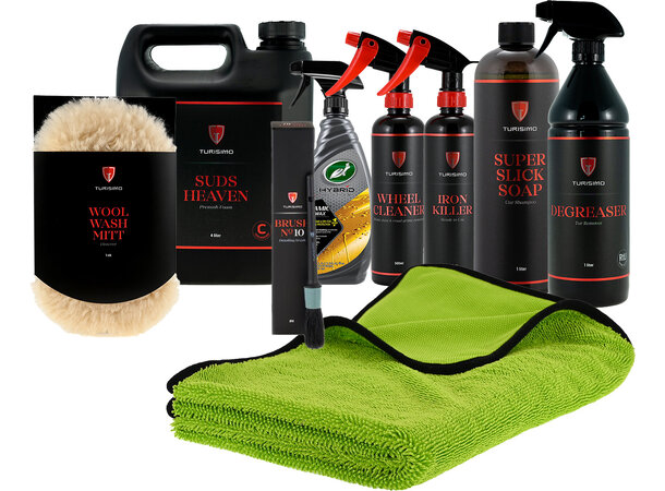 Turisimo Komplett Bilvask inneholder alt du trenger til den grundige hovedvask av bilen, inkludert hurtigvoks som du lett bruker hver gang du vasker bilen - for optimal glans.