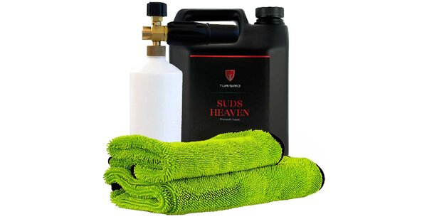 Produktet er svært konsentrert og krever kun et blandingsforhold på 1-5%. Turisimo Suds Heaven leverer et tykt skum osm vil henge godt på overflaten og løse opp foruresninger. Suds Heaven vil ikke bryte ned lakkforseglingen nevnverdig.