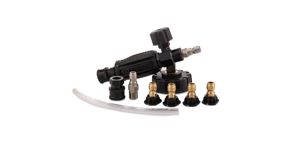 Det medfølger 4 stk 60-graders lavtrykkdyser som er beregnet for å påføre skum og annen kjemi. Det er viktig å huske på at disse må benyttes for best resultat, du vil ikke kunne oppnå samme kvalitet på skummet ved bruk av standard 25/40 graders høytrykkdyser. Bland kjemien slik som du ville gjort i tradisjonell skumkanon og monter på underspyleren.