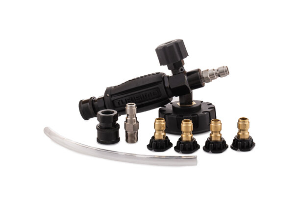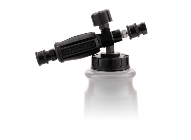 Det å spyle under bilen med en underspyler er det mange som har fått øynene opp for, men man føler forsatt at man ikke får vasket godt nok uten kjemi. Turisimo har nå løst problemet og vi kan med stolthet presentere Undercarriage Foamer fra Turisimo. Dette utstyret kan kobles til Turisimo Undercarriage Washer og lar deg enkelt påføre f.eks høy alkaliske skumsåper under bilen din for å rengjøre ekstra godt. Ikke bare kan du påføre skumsåper, du kan også påføre konsentrert mikroavfetting, saltfjerner, skumsåper og skumforseglinger.