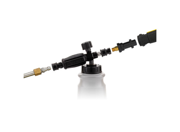 Det medfølger 4 stk 60-graders lavtrykkdyser som er beregnet for å påføre skum og annen kjemi. Det er viktig å huske på at disse må benyttes for best resultat, du vil ikke kunne oppnå samme kvalitet på skummet ved bruk av standard 25/40 graders høytrykkdyser. Bland kjemien slik som du ville gjort i tradisjonell skumkanon og monter på underspyleren.