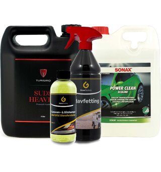 - Start med en grundig nedvask av kjøretøyet.
