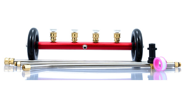 Turisimo Undercarriage Washer Deluxe kommer med tre forlengelsesrør hvor den ene har en 45 grader bøy. Dette gjør at når du monterer underspyleren på høytrykkpistolen vil det være enkelt å komme langt under bilen uten at du må bøye deg langt ned.
