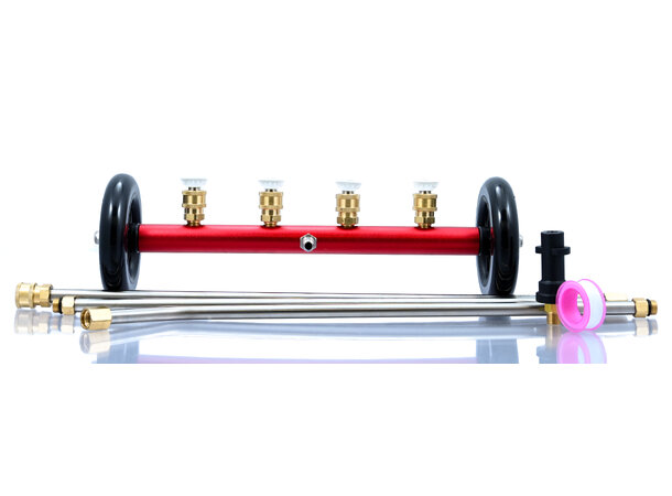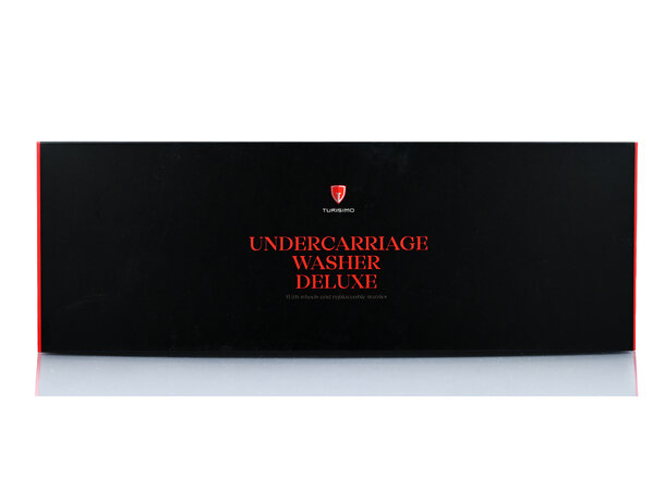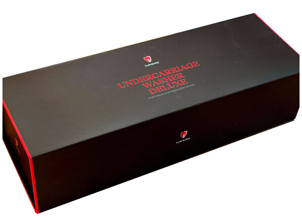 Turisimo Undercarriage Washer Deluxe er en underspyler til bil, av høy kvalitet. Undercarriage Washer Deluxe kommer med store myke hjul som lar deg enkelt føre underspyleren på alle typer underlag. Underspyleren kommer med 40 grader dyser påmontert men disse er festet med hurtigkoblinger og kan enkelt byttes ut med 25 grader dyser avhengig av hva du skal rengjøre. Selve forlengelsesrørene blir skrudd sammen for bedre stabilitet samtidig som selve underspyleren er lakkert i en flott rødfarge som forhindrer rusting.