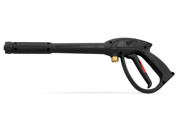 Denne høytrykkspistolen med metallforsterkning er et solid og pålitelig verktøy for deg som ønsker effektiv rengjøring med høytrykkspyler. Den kobles enkelt til både slange og lanse via gjengeforbindelser og må brukes sammen med en separat lanse.