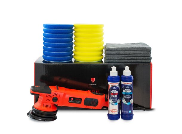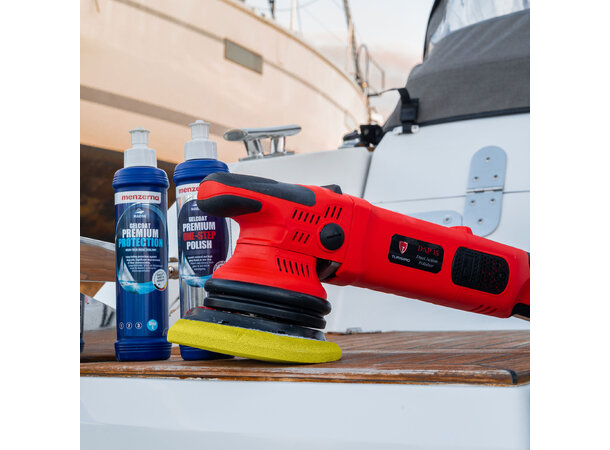Denne marine poleringspakken er spesielt utviklet for båtpleie. Med en kraftig poleringsmaskin, spesialtilpassede poleringsmidler og slitesterke poleringsputer, er dette det ultimate settet for å vedlikeholde og restaurere gelcoat og båtlakk.